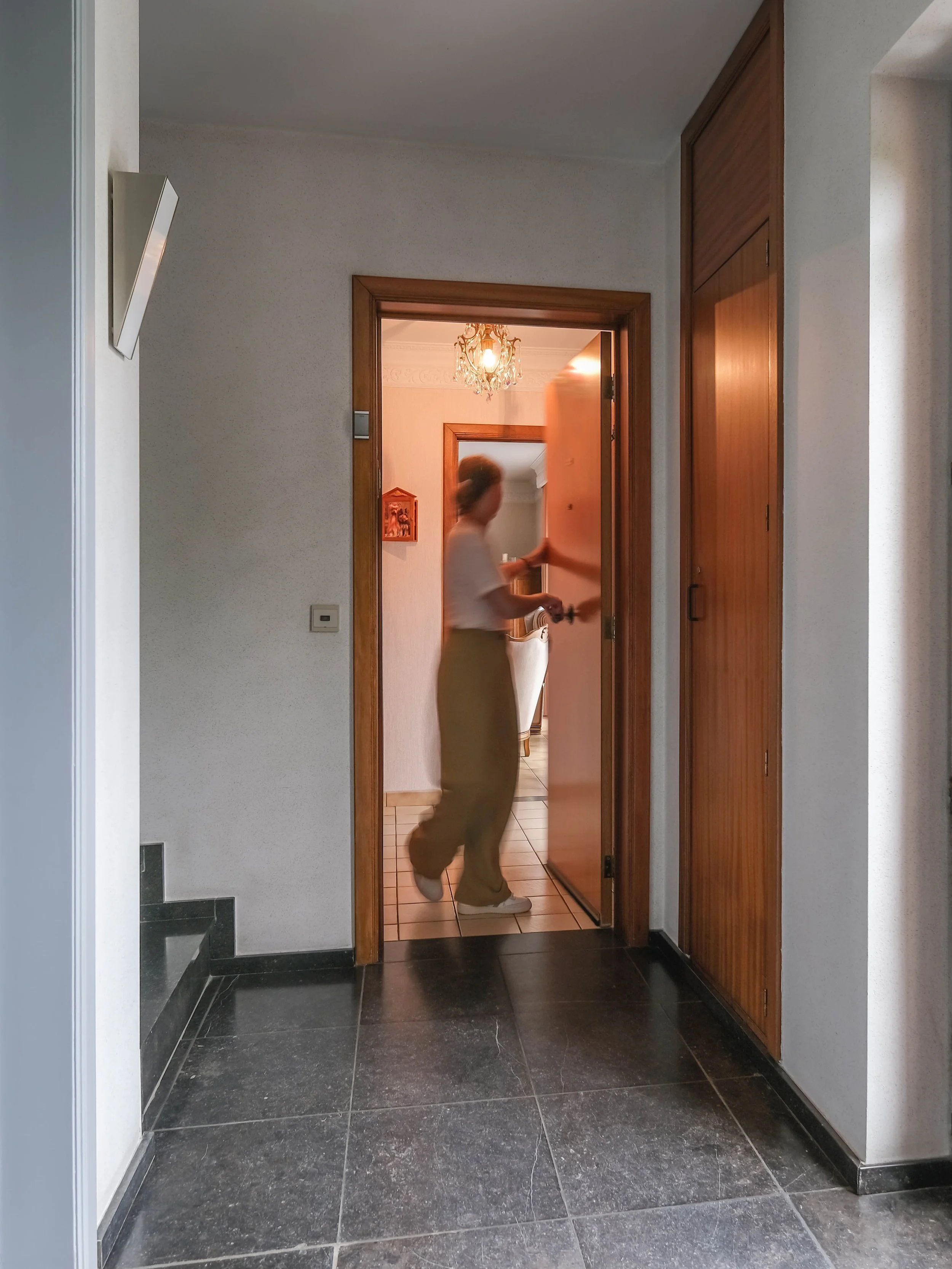 • Je betreedt het gebouw, via de lift of trap bereik je het appartement op de eerste verdieping.