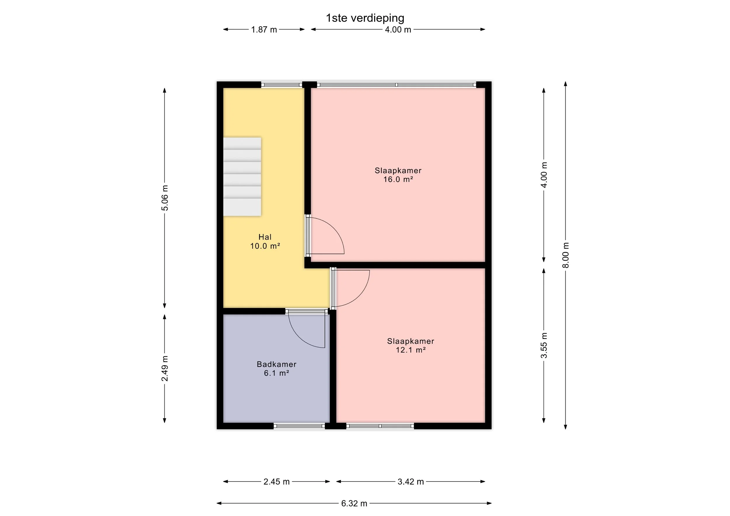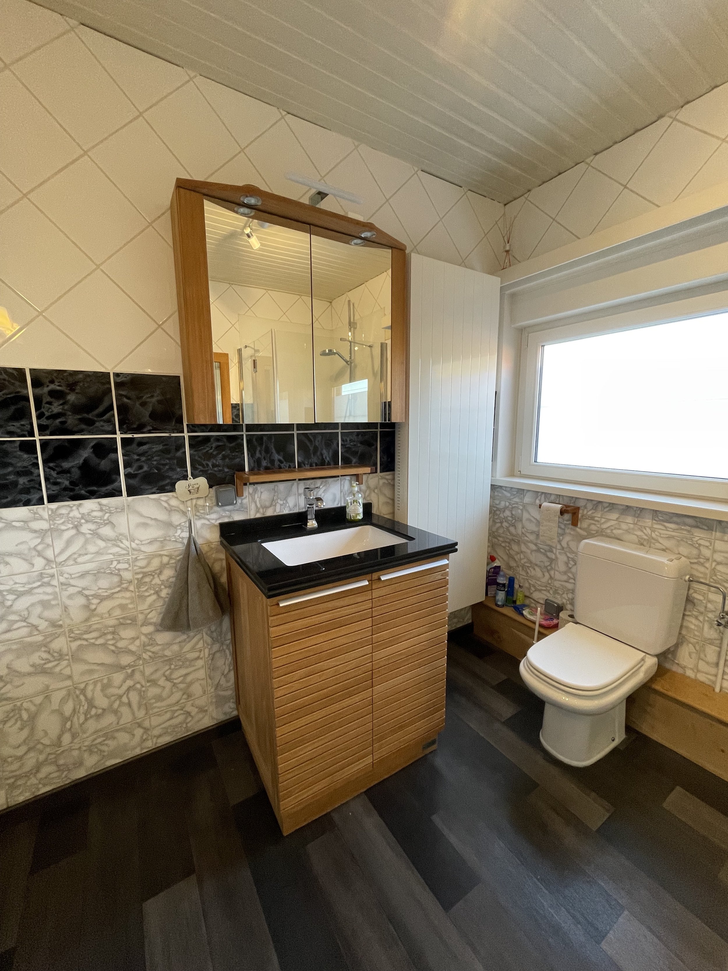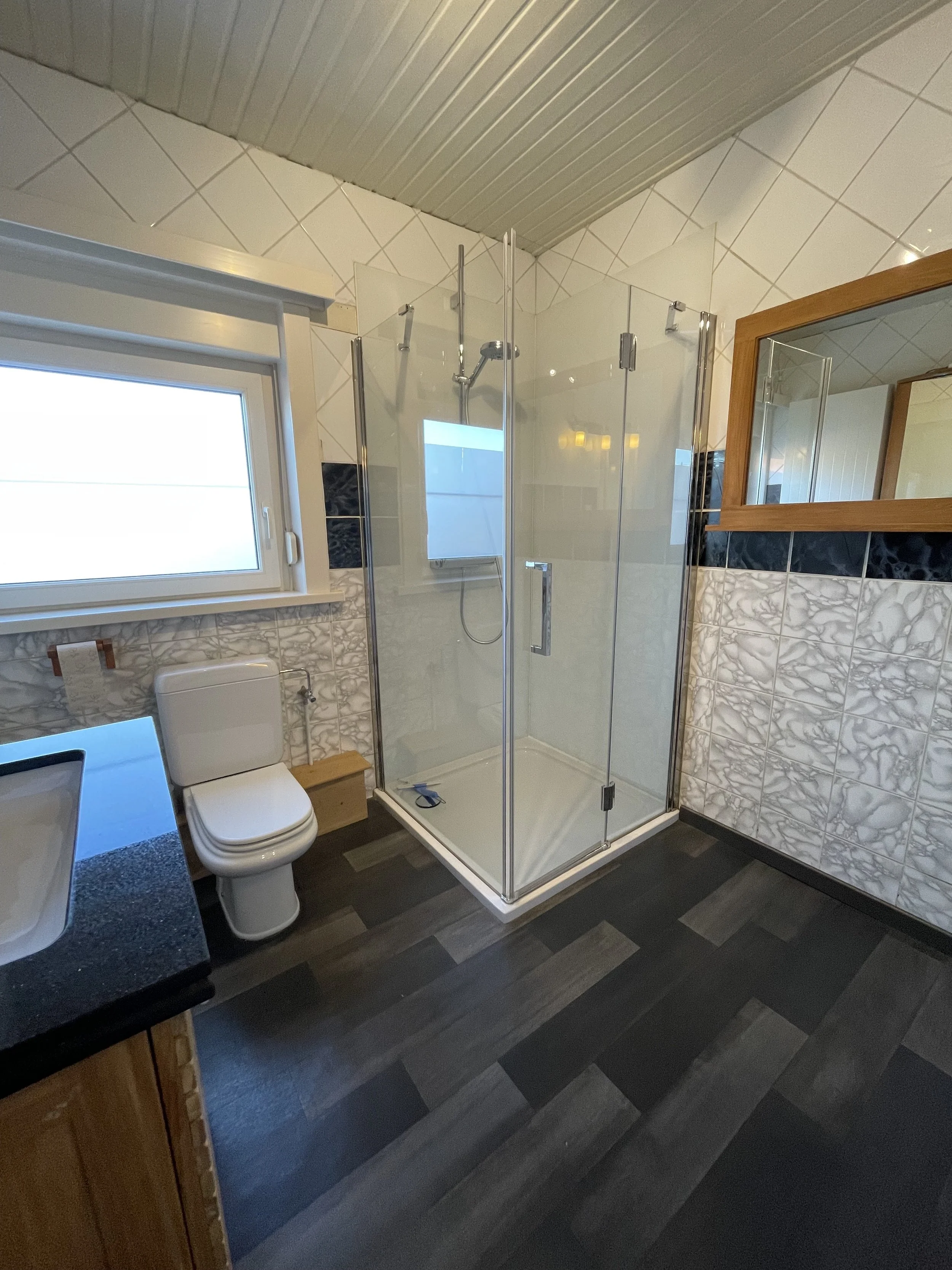 Op de eerste verdieping vind je 2 slaapkamers en een ruime badkamer met toilet, lavabomeubel en comfortabele douche.
